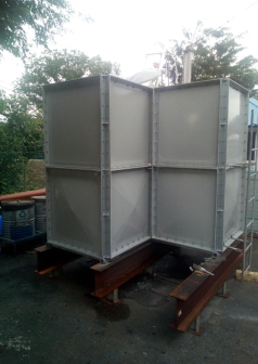NUCO pressed steel sectional water tank constructed with hydraulically pressed flanged panels, conform to BS 1564 : 1975 and SS22 : 1979